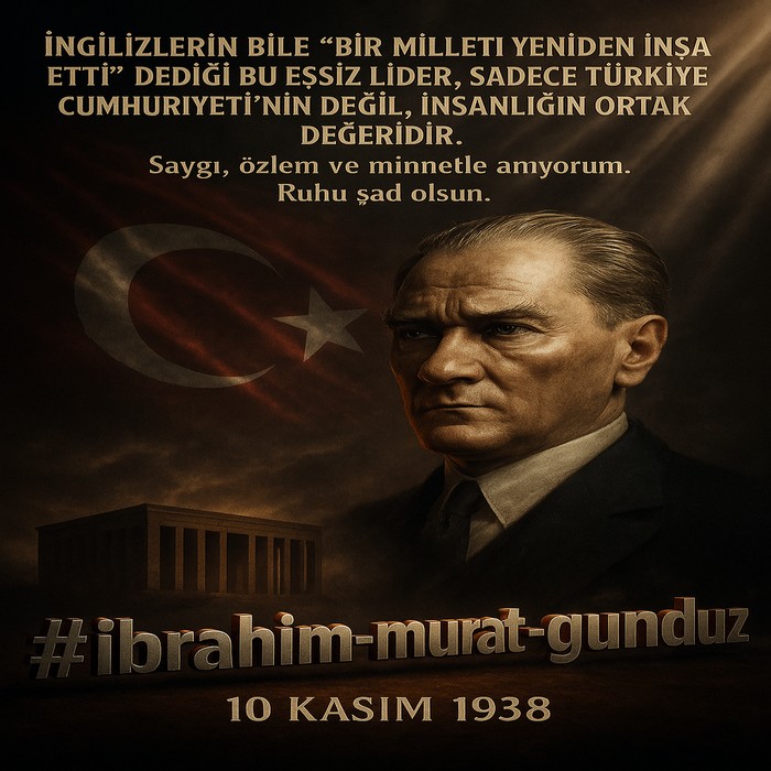 İş insanı ve spor camiasının tanınan ismi İbrahim Murat Gündüz, Ulu Önder Gazi Mustafa Kemal Atatürk’ün ebediyete intikalinin yıl dönümünde yayımladığı anlamlı mesajla dikkat çekti.